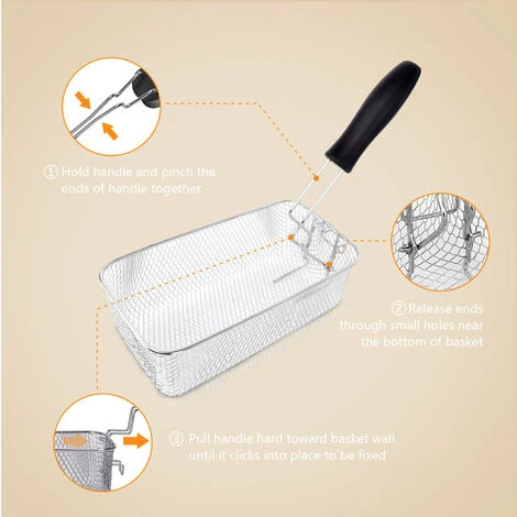 – Cestello di frittura in acciaio inox con impugnatura a tatto fredda
