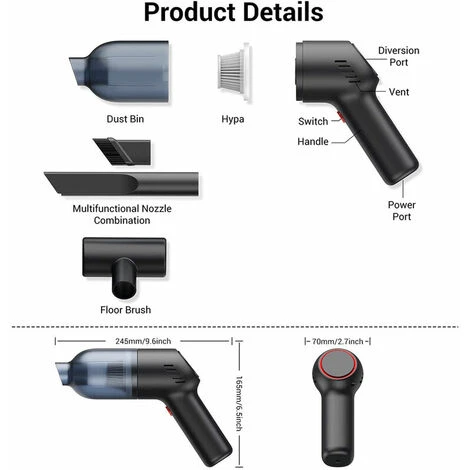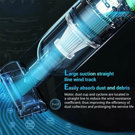 1. 【Aspirazione lineare ad ampio percorso d’aria】 Il nostro aspirapolvere portatile ad alta potenza ha una forte potenza di aspirazione e una potenza di ingresso nominale di 120 W, rimuovendo rapidamente e accuratamente polvere, peli di animali domestici e polvere. sporco. Il contenitore della polvere e il ciclone sono disposti in linea retta, il che migliora efficacemente l’efficienza del flusso d’aria e la potenza di aspirazione, facilitando il lavoro di pulizia.
