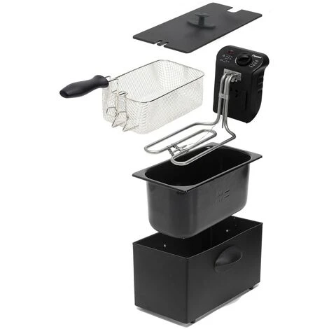 La friggitrice BESTRON AF357B è ideale per friggere patate, snack, pesce, ecc. Capacità di ca. 1000 gr di patatine fritte Temperatura regolabile fino a 190ºC Spia di indicazione temperatura. Sicurezza contro il surriscaldamento Manici resistenti al calore. Completamente sfoderabile e ad eccezione della resistenza, tutte le parti sono lavabili in lavastoviglie.