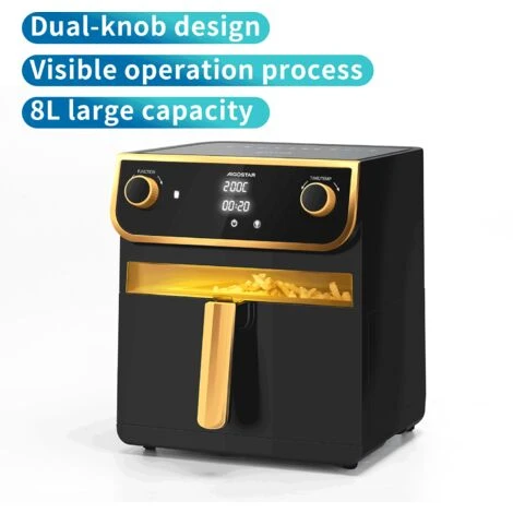 - Friggitrice ad aria Aigostar di grande capacità da 8L, compatta e di 1700 W di alta potenza. La friggitrice può preparare cibo per 6-8 persone in breve tempo per la tua famiglia. Con un rivestimento antiaderente per uso alimentare.