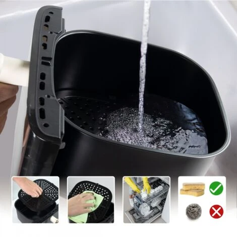 Dimentica gli odori e gli schizzi durante la cottura con Air Fryer. Grazie al suo filtro dell’olio facilmente rimovibile, puoi lavarlo sia a mano che in lavastoviglie. Il suo interno in ferro antiaderente renderà la pulizia un compito più semplice. Spostarlo sarà facilissimo grazie al fatto che è molto leggero, e riporlo non sarà un problema poiché le sue dimensioni sono ottimizzate per essere il più piccolo possibile senza rinunciare alla sua grande capienza. Include un sistema di allarme che ti avviserà quando il cibo è pronto.
