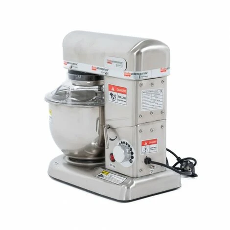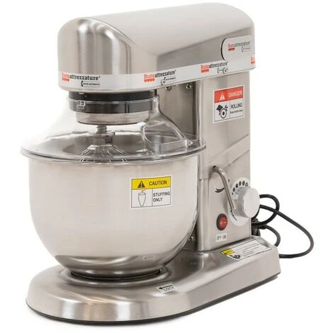 Planetaria mixer da banco professionale capacità 5 lt in ghisa colorazione acciaio, trasmissione ad ingranaggi.Vasca estraibile.