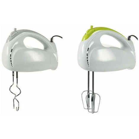 CORPO IN PLASTICA. A 5 VELOCITÃ , 2 FRUSTE E 2 GANCI IN ACCIAIO, TASTO ESPULSIONE FRUSTE. IDEALE PER AMALGAMARE, MONTARE A NEVE, MESCOLARE. DOTATO DI PARTE POSTERIORE PIATTA PER APPOGGIO SU TAVOLO. CAVO 120 CM, TENSIONE 230V – 50HZ. COLORI ASSORTITI.150 W