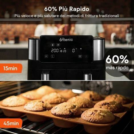 ULTENIC K20 – Friggitrice ad aria senza olio – Doppio scomparto – Touch Screen